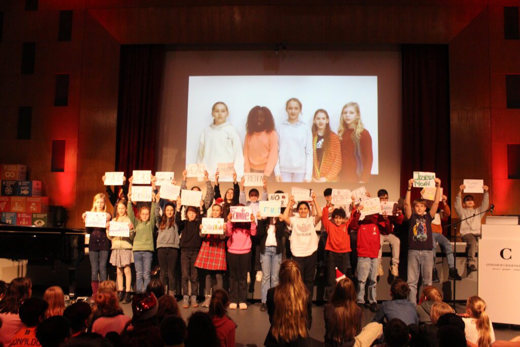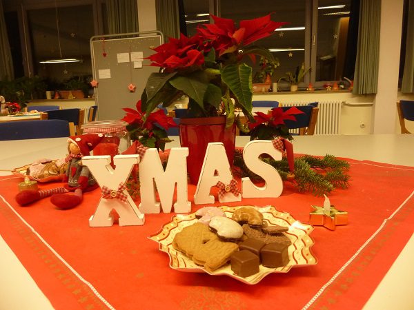 Wir verabschieden uns vom alten Jahr und feiern Weihnachten traditionell mit einer Aulaveranstaltung und allen 1.000 Schülerinnen und Schülern und dem gesamten Kollegium. Vertraute Elemente sind dabei, die aber jedes Jahr wieder schön sind und immer wieder neu wirken, da andere Schülerinnen und Schüler sie präsentieren. Gastschüler berichten von Weihnachtstraditionen in ihren Heimatländern, in diesem