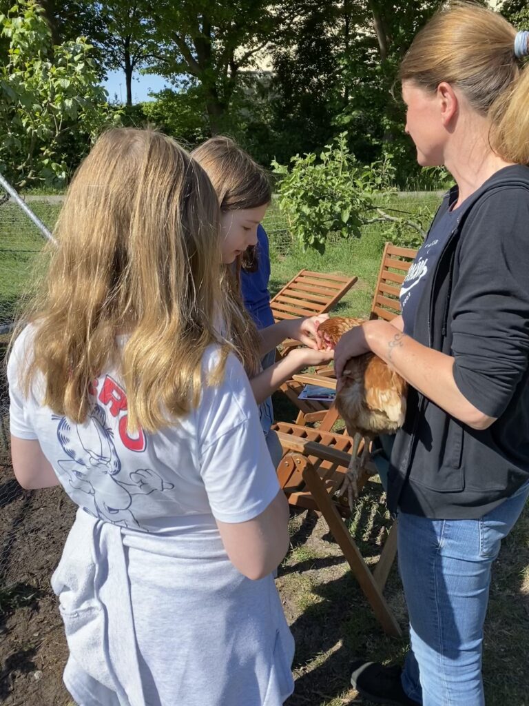 Die Klassen 5a und 5m machten sich im Rahmen ihres Erdkundeunterrichts am 14.05. bzw. 23.05.2025 mit Frau Boeck und in Begleitung mit Frau Rapin bzw. Frau Fritzen auf den Weg zum Hof Reuter, um in Stationsarbeit u.a. herauszufinden, wie viel Platz in einem mobilen Legehennenstall ist, wie sich Hühner so verhalten, woran man ein gutes Ei erkennt und warum Ziegen den Auslaufbereich der Hühner bewachen. Nicht nur die vielen Informationen rund um das Huhn, sondern auch die anderen tierischen Bewohner wie Hofhunde, Ponys und die Ziegen machten diesen Tag zu einem besonderen Erlebnis.