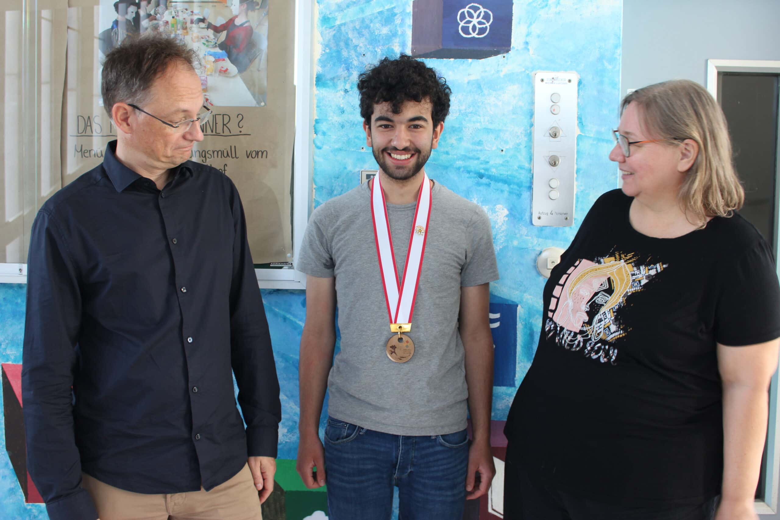 Stimmt, das sind Medaille und Gratulationsfoto von 2023. Heute gratulieren wir aber ganz herzlich unserem mathematischen „Wiederholungstäter“ Leonard Kottisch (Q1) zur Qualifikation für die Teilnahme an der Internationalen Mathematik-Olympiade 2024 (IMO)! Andere fahren im Juli in den Süden in die Sonne oder begeben sich in die Berge – Leonard reist in die wunderschöne britische Stadt Bath. Wir wünschen gute Reise – und für uns als Schulgemeinschaft bedeutet das außerdem: Kurz die Daumen ausschütteln und dann weiterdrücken!