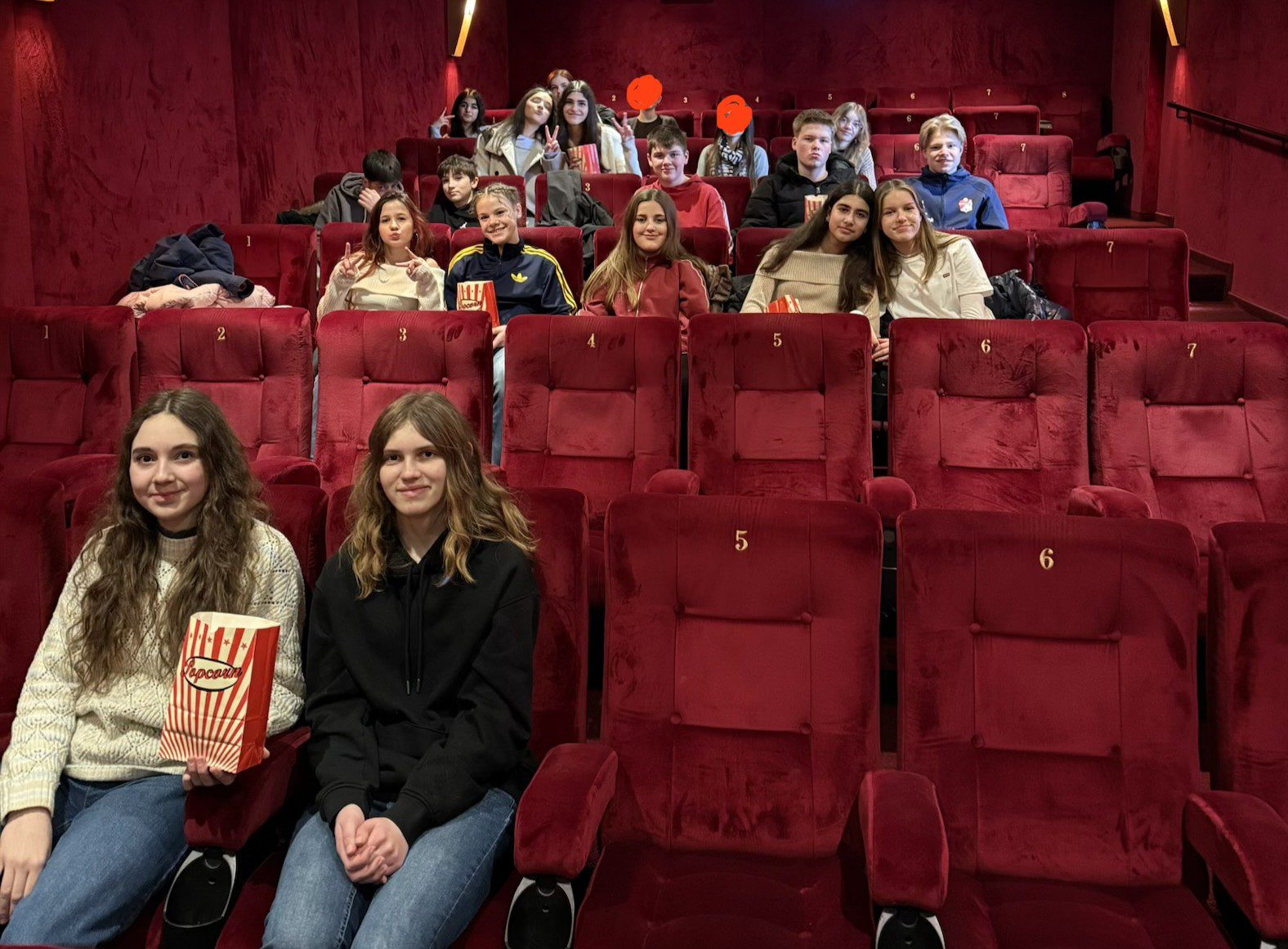 Bereis zum 25. Mal findet in diesem Jahr das französische Schulfilmfestival Cinéfête in Deutschland statt. An der Cäci gibt uns das in den Französischklassen und -kursen noch bis zum 29.1. die tolle Gelegenheit, französische Filme in Originalversion im Casablanca-Kino zu schauen. Mit etwas Glück hat man auch mal ein Kino für sich allein, wie der Kurs des 8. Jahrgangs auf dem Bild :).