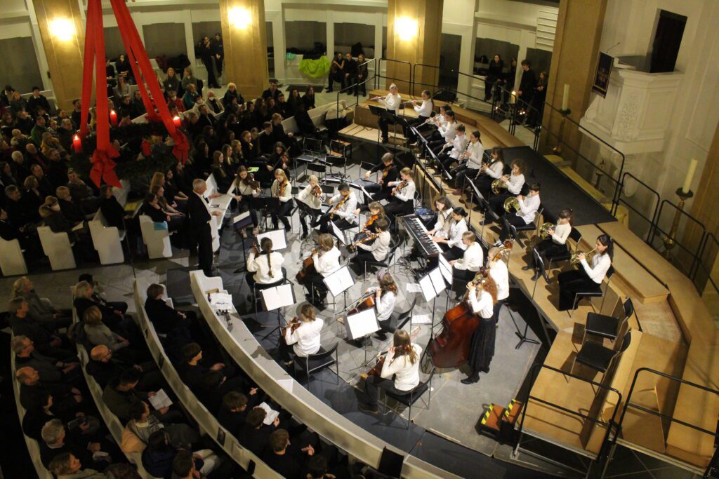 Wir haben so viele talentierte Musikerinnen und Musiker, dass ein einziges Weihnachtskonzert gar nicht ausreicht, damit alle sich einbringen können! In der Lambertikirche präsentierten sich am Dienstag das Nachwuchsorchester, der Chor, das Orchester, der Leistungskurs Musik und verschiedene Solistinnen und Solisten, in der Cäci-Aula am Mittwoch Smallband, kleiner Chor, die Percussion-Band, BigBand und die Musikwerkstatt. Was beide Konzerte gemeinsam haben, sind Spielfreude, Ausdrucksstärke und die Wirkung auf das Publikum: Das ist Adventsstimmung, jetzt kann Weihnachten kommen! In diesem Sinne ein Zitat aus dem Weihnachtslied von John Lennon als Wunsch für diese Tage: