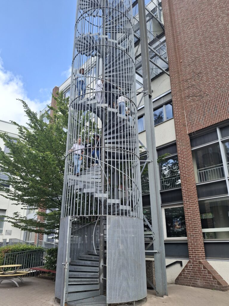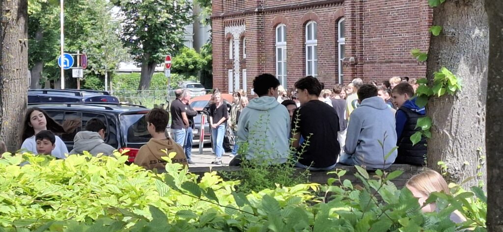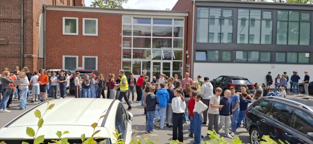 Mitten in der 6. Stunde passierte es – der Feueralarm ging los! Und er war nicht zu überhören, hat sicherlich auch die letzten Schülerinnen und Schüler aus süßem Schulschlaf und den Tagträumen gerissen. Aber es war nur eine Probe, glücklicherweise brannte es nirgendwo wirklich. Erfreulich routiniert und ruhig machten sich alle auf den Weg aus den Klassenzimmern zu den Sammelpunkten auf dem Dobbenhof und an der OTB-Halle, einigen wurde dabei sogar der Wunsch erfüllt, endlich einmal die Fluchttreppen benutzen zu können. Bei angenehmem Sonnenwetter warteten alle geduldig und sehr entspannt auf das Ende des Alarms und frischten dabei in Gesprächen ihre Kenntnisse über das Verhalten im Gefahrenfall auf. Auf dass wir sie niemals im Ernstfall anwenden müssen!