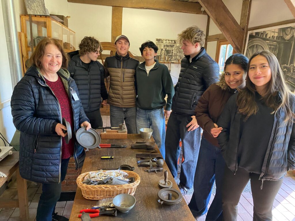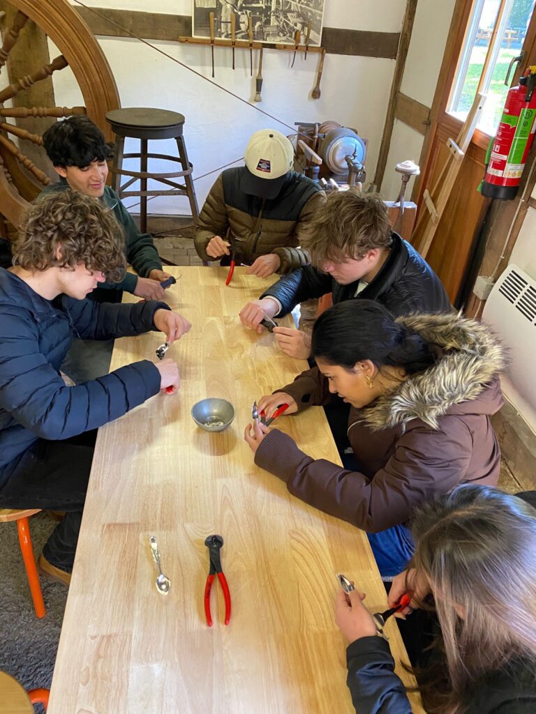 Einen Tag verbrachten die Gastschülerinnen und Gastschüler bei einem Zinn- oder Kannengießer im Museumsdorf in Cloppenburg. Dabei erhielten sie viele Informationen über das Leben und vor allem die Esskultur in Niedersachsen vor über 150 Jahren und fertigten anschließend jeweils einen eigenen Zinnlöffel an.