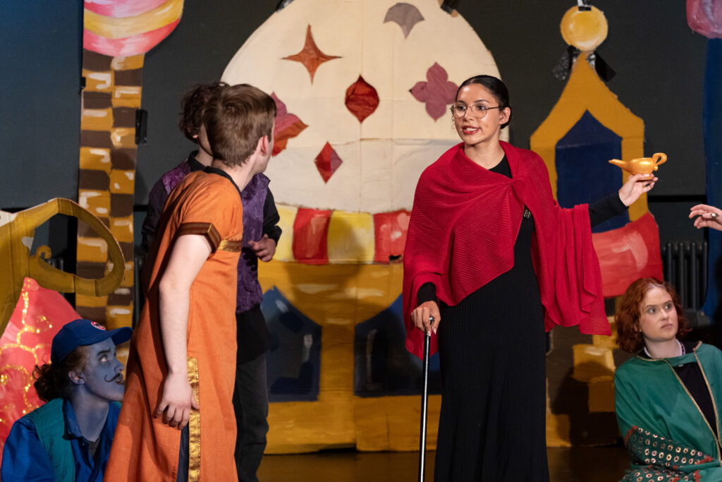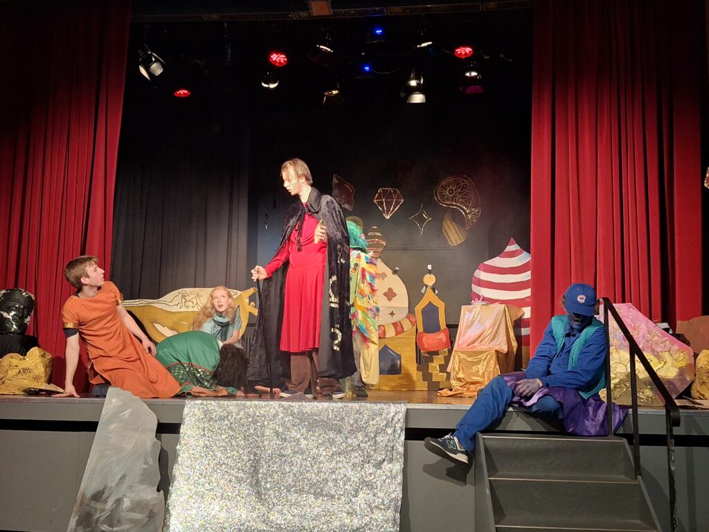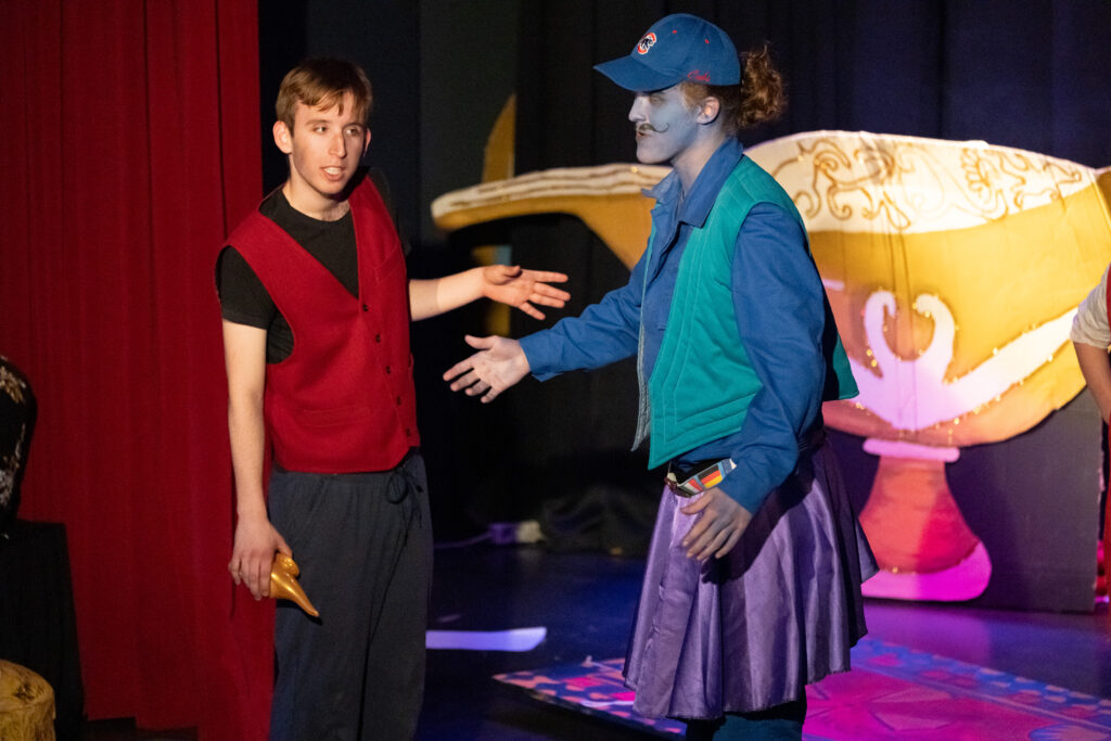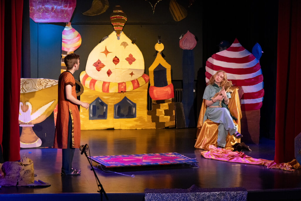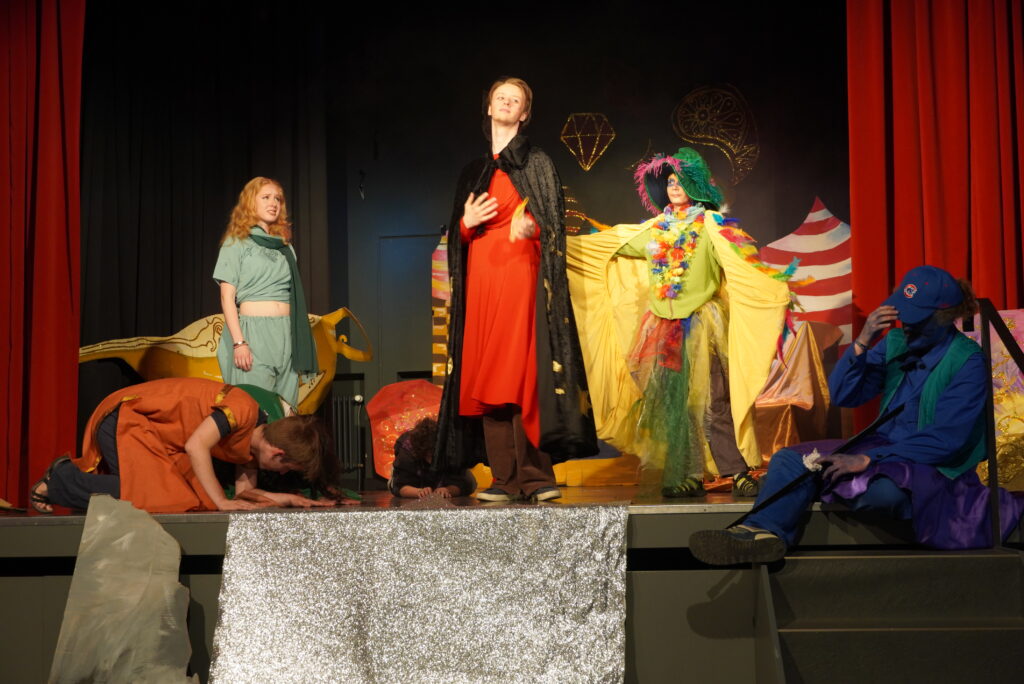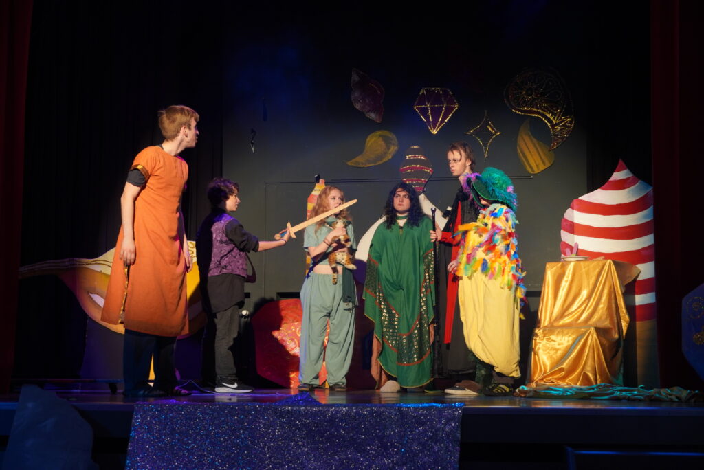 Doch es war nicht die English Theatre Group unter der Leitung von Frau Dr. Herzig-Danielson alleine, die uns als Publikum so verzaubert hat – der große Chor von Frau Hoppe und der Sologesang sind genauso zu erwähnen wie das magische Bühnenbild des Profilkurses Kunst unter der Leitung von Frau Janas, der es geschafft hat, die Cäci-Bühne in Oldenburg mit verschiedenen Farben und Stoffen in das orientalische Agrabah zu verwandeln und uns in die Zeit von 1001 Nacht zu entführen. Ergänzt wurden diese Effekte durch die engagierte Veranstaltungstechnik, denn „Beleuchtung“ beim Theater ist schließlich wesentlich mehr als nur „Licht an“ und „Licht aus“, sondern eine Kunst für sich.