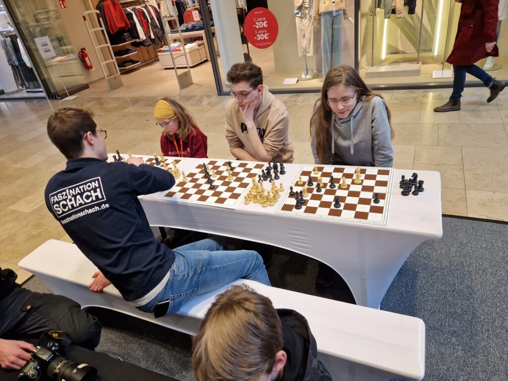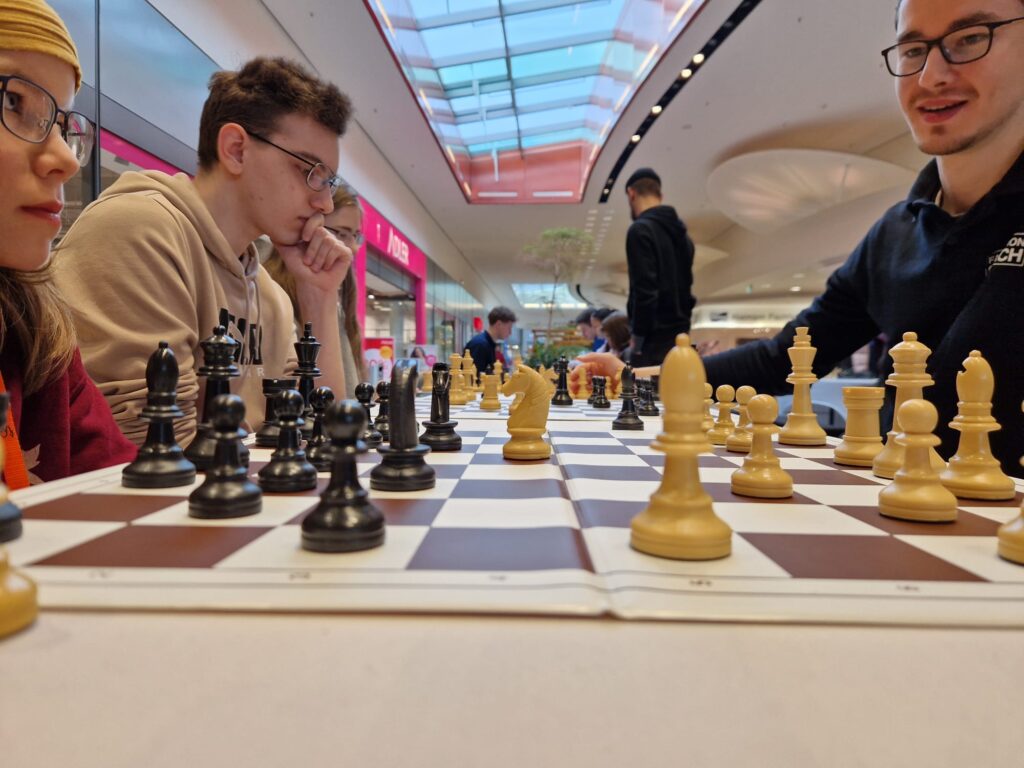 Die beliebte Kinderschachinitiative „Faszination Schach“ tourt quer durch Deutschland und war vom 27. Februar 2025 bis zum 1. März 2025 zum ersten Mal zu Gast in Oldenburg. Die Initiative demonstriert eindrucksvoll, dass das „königliche Spiel“ nicht nur von Königen gespielt wird. Ein Event, welches sich die Schach AG der Cäci natürlich nicht entgehen lassen konnte!