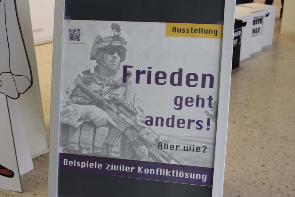 Im Rahmen unserer Aktivitäten als UNESCO-Projektschule zeigen wir anlässlich des diesjährigen Projekttagsmottos „Frieden!#Händereichen#Brückenbauen!“ die Ausstellung „Frieden geht anders – aber wie?“ Die Ausstellung zeigt an sieben konkreten Konflikten auf, wie mit unterschiedlichen gewaltfreien Methoden Kriege und kriegerische Auseinandersetzungen verhindert oder beendet werden konnten. Alle Klassen ab Jahrgang 8 sind eingeladen, die Ausstellung zu besuchen. Sie ist die kommenden drei Wochen im Foyer und in den Räumen 0.17 und 0.18 zu sehen.