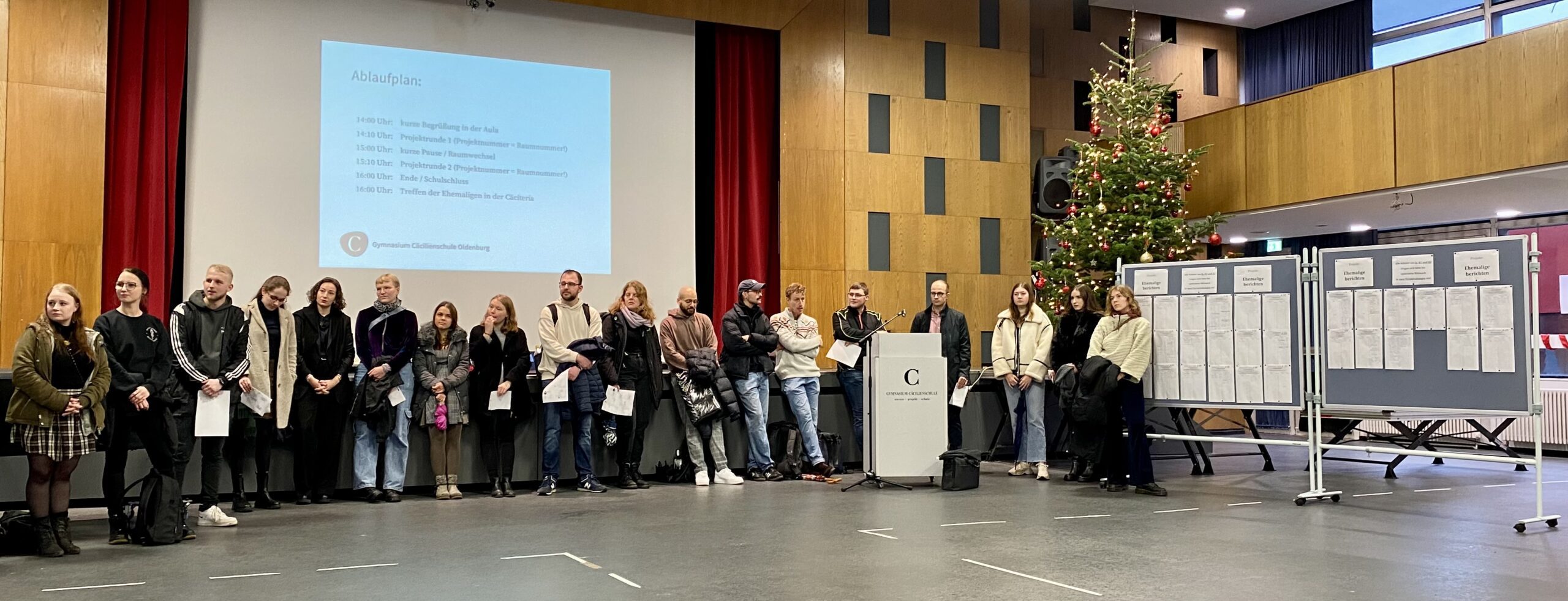 Nach längerer Corona-Pause hieß es an diesem Donnerstag endlich wieder „Ehemalige berichten“. Fast 30 ehemalige Cäci-Absolventen waren gekommen, um unseren Schülerinnen und Schülern der Jahrgänge 12 und 13 sehr persönliche und vielfältige Einblicke in ihre Zeit nach dem Abitur zu geben. Dabei standen sie für alle Fragen rund um diverse Studiengänge und Studienorte im In- und Ausland, Ausbildungsberufe, Auslandsaufenthalte, Freiwilligendienste, Stipendien und viele andere Themen zur Verfügung. Eine schöne Cäci-Vorweihnachtstradition, die hoffentlich Lust auf die bevorstehende Zeit nach dem Abitur gemacht hat. Vielen Dank an alle Ehemaligen für ihr Engagement!