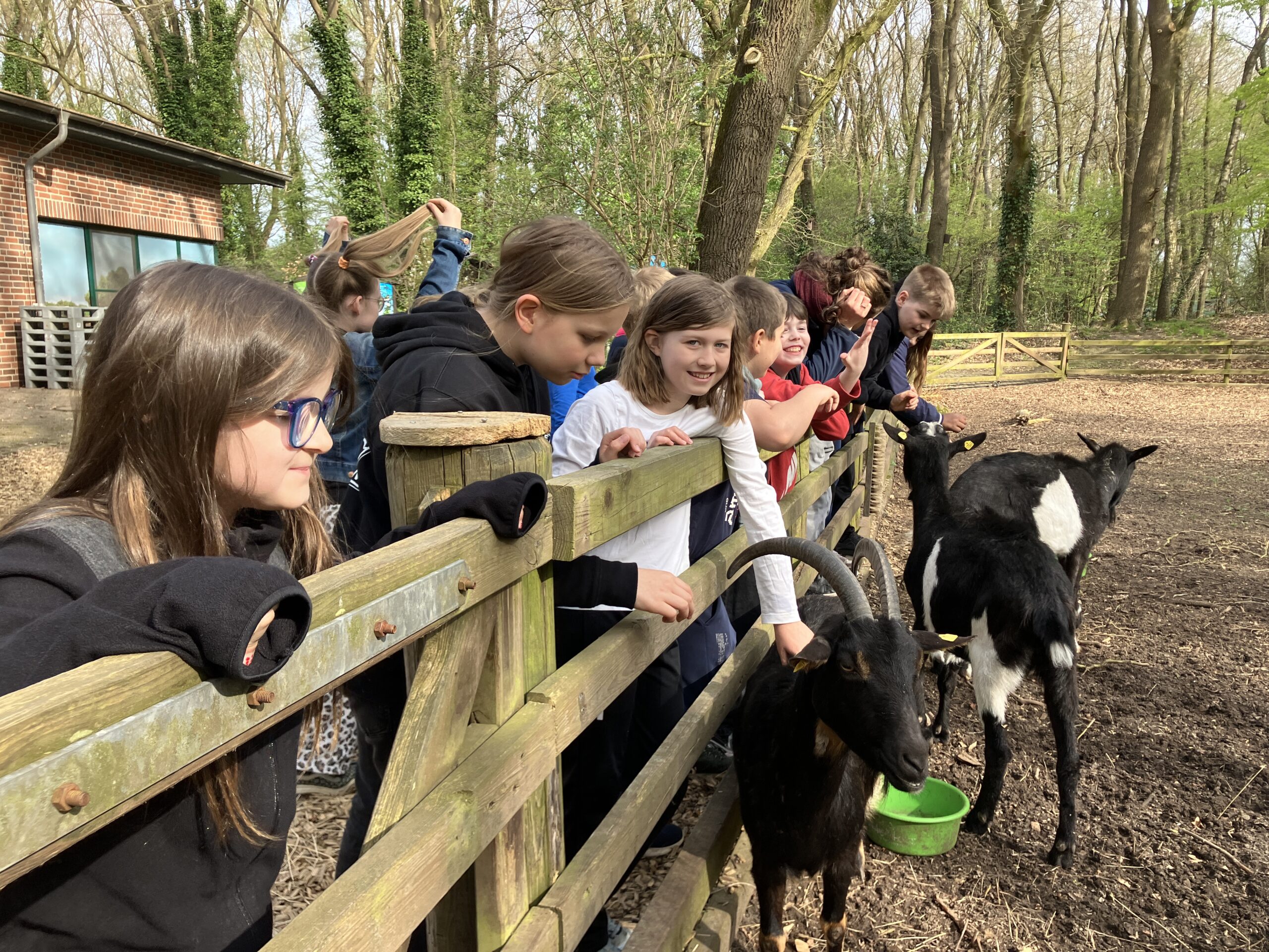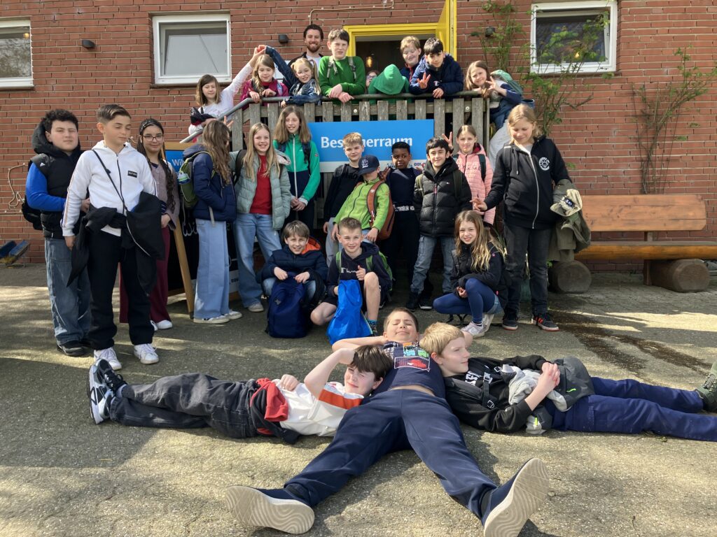 Wie in jedem Frühjahr haben sich wieder einige fünfte Klassen auf den (langen) Fußweg vom Bahnhof Großenkneten zum Biohof Bakenhus gemacht, um dort einen wunderbaren und lehrreichen Tag auf dem Bauerhof zu verbringen. Neben Informationen zur Beschaffenheit unserer (Geest-)Böden und der Gefahr von intensiver Tierhaltung für das Grundwasser konnten viele der auf dem Hof lebenden Tiere gestreichelt und versorgt werden. Dass das Fleisch dieser Tiere später zum Beispiel im Döner, landet war für einige eine Erkenntnis, bei der sie erst einmal schlucken mussten. Die Redukion des persönlichen Fleischkonsums oder gar der Verzicht auf diesen wurde von vielen Kindern scharfsinnig als Teil der Lösung erkannt.