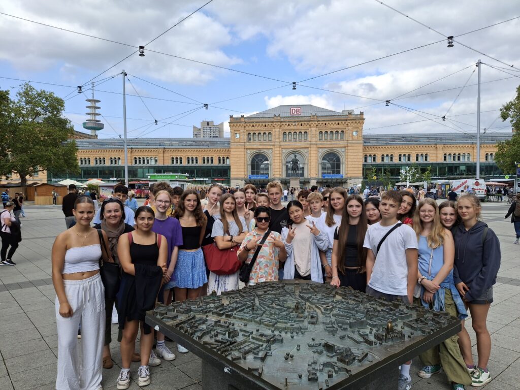 Herzliche Grüße der Klassen 8a, 8c und 8m, die auf Klassenfahrt in Norddeutschland unterwegs sind – die 8a und 8m in der Hansestadt Lübeck und die 8c in unserer Landeshauptstadt Hannover. Perfekt gestaffelt erfolgte am Montagmorgen die Abreise um kurz nach halb 9, um kurz nach 9 und um kurz nach halb 10, um weder die Deutsche Bahn noch die Mitreisenden zu überfordern.