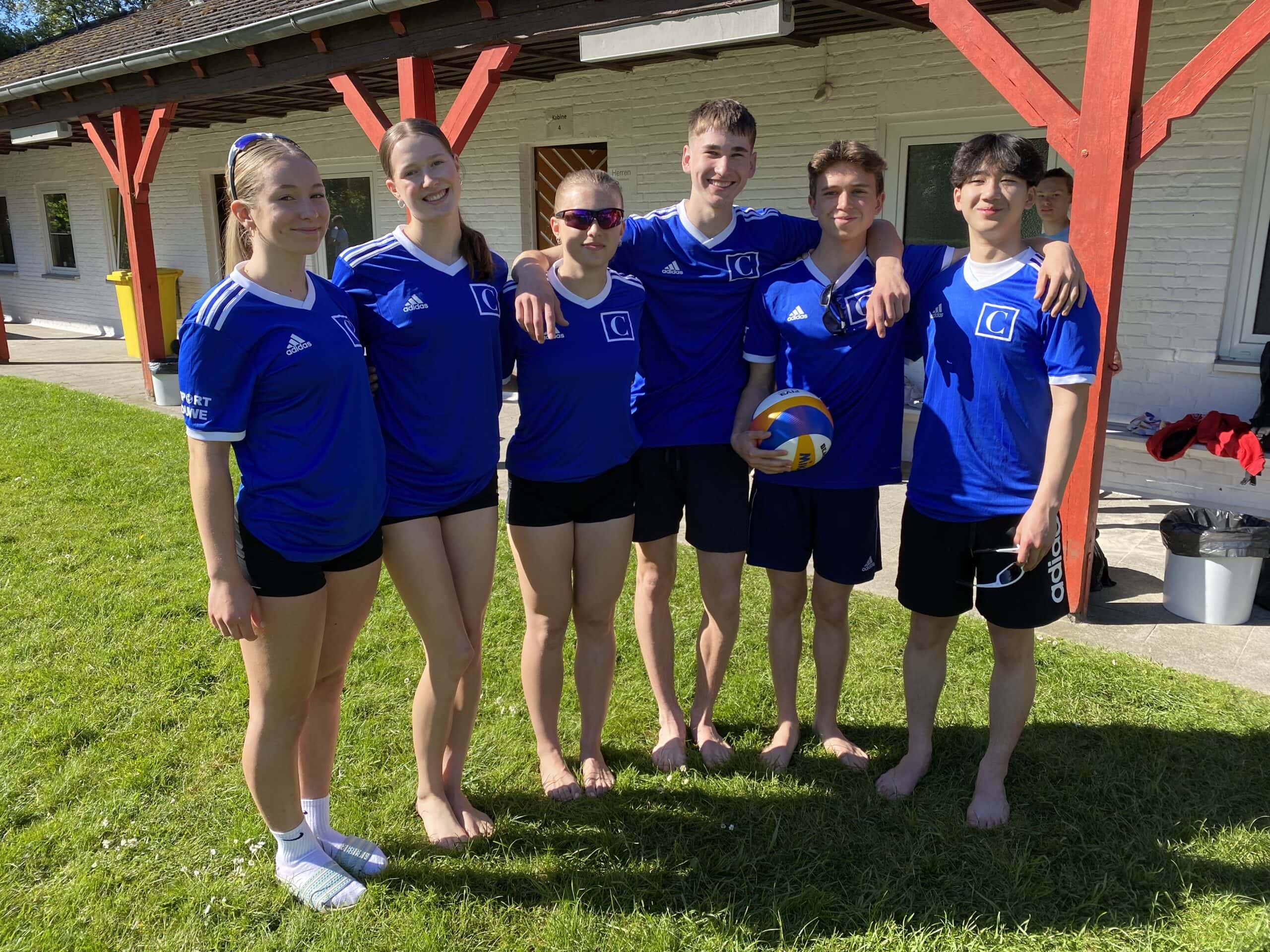 Das Cäci-Beachvolleyballteam landete am Mittwoch mit einem 5. Platz beim Bezirksentscheid in Wilhelmshaven im Mittelfeld. Dabei kam das Team nicht nur aufgrund des sommerlichen Wetters ins Schwitzen, sondern auch so mancher hart umkämpfte Punkt verlangte einiges von ihnen ab. Wir gratulieren zu dieser sportlichen Leistung!