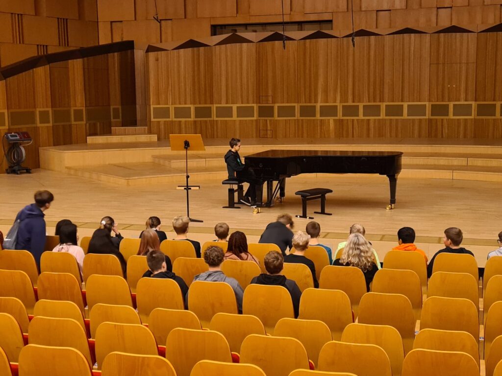 Der Besuch des NDR-Funkhauses wurde dadurch gekrönt, dass Hannes Krüger und Tiago Coelho auf dem Konzertflügel im großen Konzertsaal spielen durften. Dieser Moment dürfte den Jungen sicher lange in Erinnerung bleiben. Am Nachmittag wurden im renommierten Sprengel-Museum am Maschsee Einblicke in die Welt „Abenteuer Abstraktion“ – Titel der aktuellen Ausstellung – gegeben und im Workshop hat der kreative Umgang mit verschiedenen Materialien viel Spaß gemacht.
