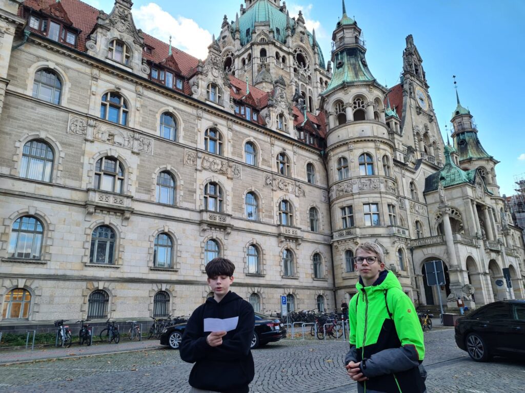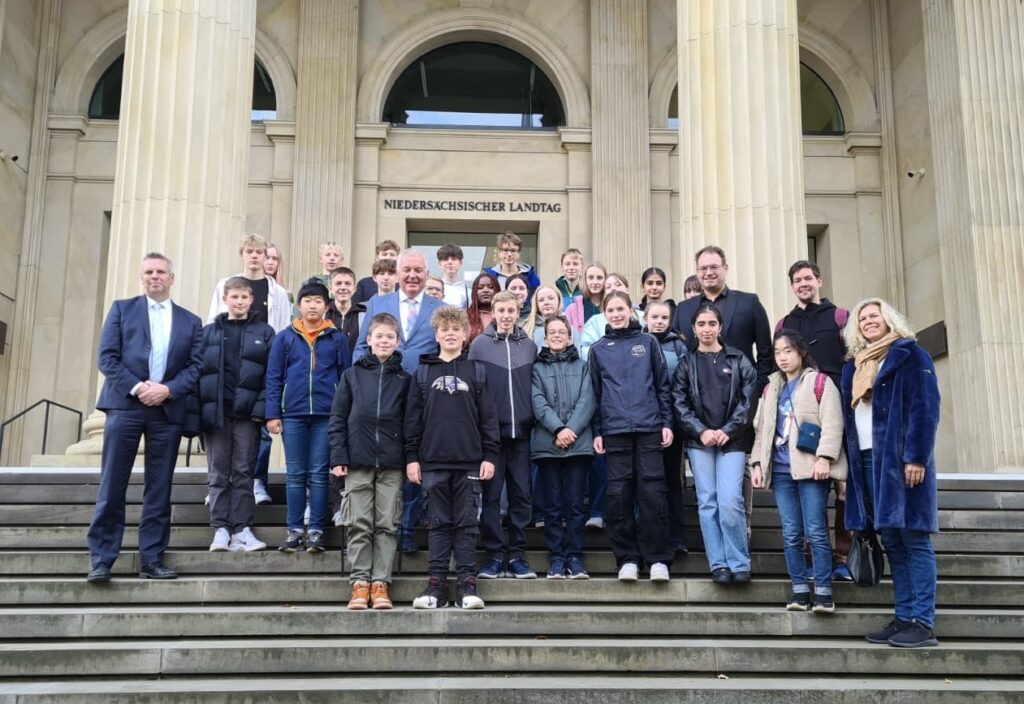 Eine erlebnisreiche und spannende Woche erlebte die 8b in der Landeshauptstadt. Als absolutes Highlight kürten die Schülerinnen und Schüler das E-Kartfahren, gefolgt vom Besuch des Landtages. Dort konnten sie am Mittwoch die Regierungserklärung unseres Ministerpräsidenten Stephan Weil zu den Ergebnissen der Bund-Länder-Runde bezüglich der Migrationspolitik verfolgen. Anschließend diskutierten neben Ulf Prange (SPD) auch Vertreter der anderen Parteien (Grünen, CDU und AfD) eine Stunde lang mit der 8b über verschiedene Themen. Und die Klasse stellte auch unverblümt Fragen wie die nach dem Gehalt, einem typischen Arbeitstag der Abgeordneten, der aktuellen Migrationspolitik oder nach dem Umgang mit Mitgliedern von Parteien, deren Prinzipien man ablehne.