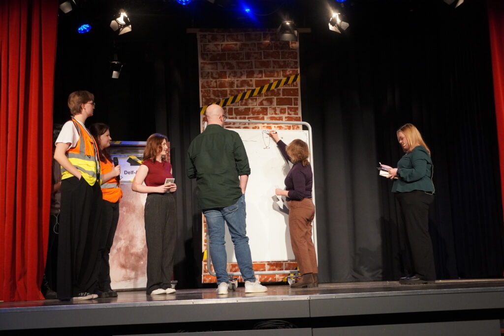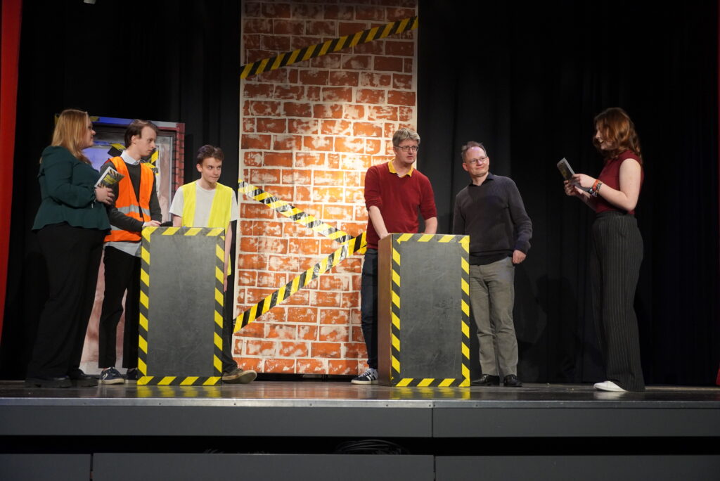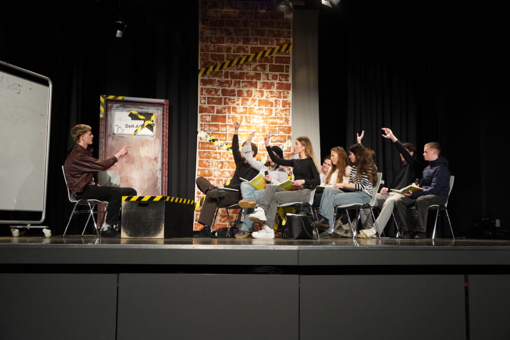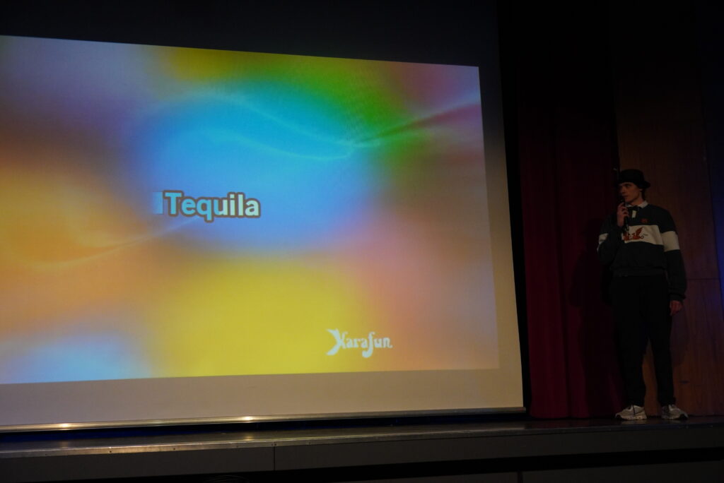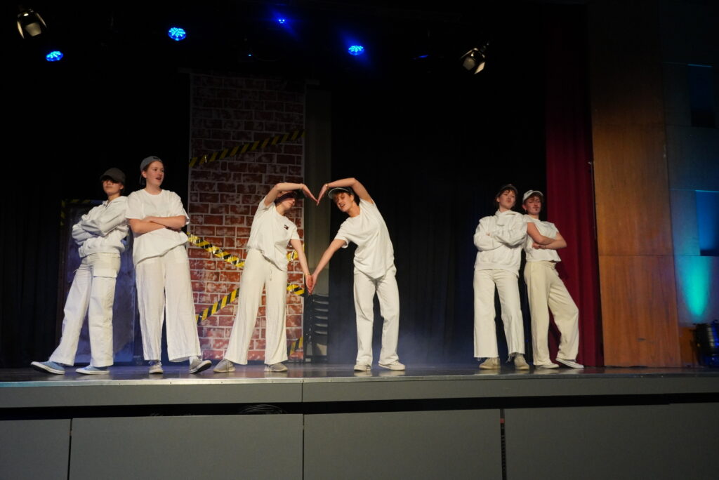 Lieder erkennen, geschichtliche Ereignisse einordnen, sportliche Aktivitäten wie Tanz, Lehrerinnen und Lehrer und die Schülerschaft – das mag zunächst nach einem normalen Schultag klingen, sind aber Programmpunkte aus dem und Beteiligte am Illustren Abend der Q2 am Freitagabend. Die Schülerinnen und Schüler präsentierten ein umfangreiches und breit gefächertes Programm mit zahlreichen Klassikern: Lehrerparodien, Lehrer-Schüler-Duelle und der Jahrgangstanz zum Abschluss. Hinzu kamen die Versteigerung von parallel zum Illustren Abend gemalten Bildern (vorgegebene Begriffe: Insel, Freiheit, Basketball), Musikeinlagen und eine Tanzeinlage mit Herrn Heise als special guest. Als besonders kniffelig erwies sich bei den Duell-Spielen die Zuordnung von Kinderbildern zu den angehenden Abiturientinnen und Abiturienten und der Lehrerschaft. Nicht nur die anwesenden Eltern in der vollbesetzten Aula dürften Gedanken durch den Kopf geschossen sein, wie schnell sich diese eben noch kleinen Kinder entwickelt haben und groß geworden sind…