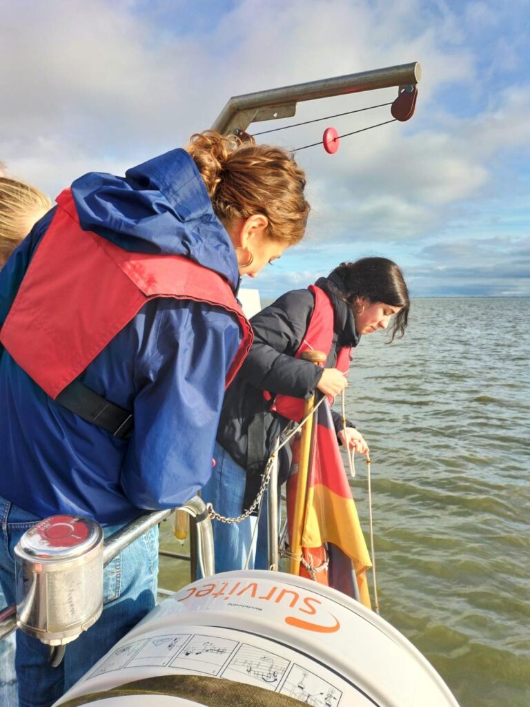 Wir waren am vergangen Mittwoch, den 30. Oktober, mit dem Erdkunde-LK der Q2 von Frau Tellechea auf einer Exkursion in Wilhelmshaven beim ICBM (Institut für Chemie und Biologie des Meeres). Dabei haben wir viele interessante Informationen über Meeresströmungen und die aktuelle Forschung im Meer erfahren, welches auch unser Semesterthema ist. Dabei haben wir unter anderem zwei „Drifter“ von einem kleinen Forschungsschiff aus im Jadebusen bei Wilhelmshaven ausgesetzt. Mit diesen können die Meeresströmungen verfolgt und die Verteilung von Plastikmüll z.B. in der Nordsee erfasst werden. Wir können die „Drifter“ durch einen GPS-Tracker, welcher sich im Inneren befindet, für die nächsten Wochen verfolgen, dies kann man auf dem Bild unten sehen.