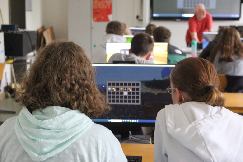 Mit ihren Kurzfilmen beteiligt sich die 10c unter der Leitung ihrer Kunstlehrerin Sophia Röhrig am niedersächsischen Schüler-Kurzfilmwettbewerb „ganz schön anders“, der in diesem Jahr den Gedanken an „ÜBERMORGEN“ in den Mittelpunkt stellt. Unter Anleitung von Norbert Thien, Kooperationspartner von „ganz schön anders“, vom Multimediamobil Region Süd lernten die Schülerinnen und Schüler in einem Workshop, wie sie mithilfe der kostenfreien Variante des Computerspielklassikers Minecraft, Minetest, neue Welten bauen und mit einer virtuellen Kamera Filme drehen. Alle Lehrkräfte des Tages unterstützten dieses Projekt, indem sie ihre Unterrichtsstunden dafür zur Verfügung stellten.