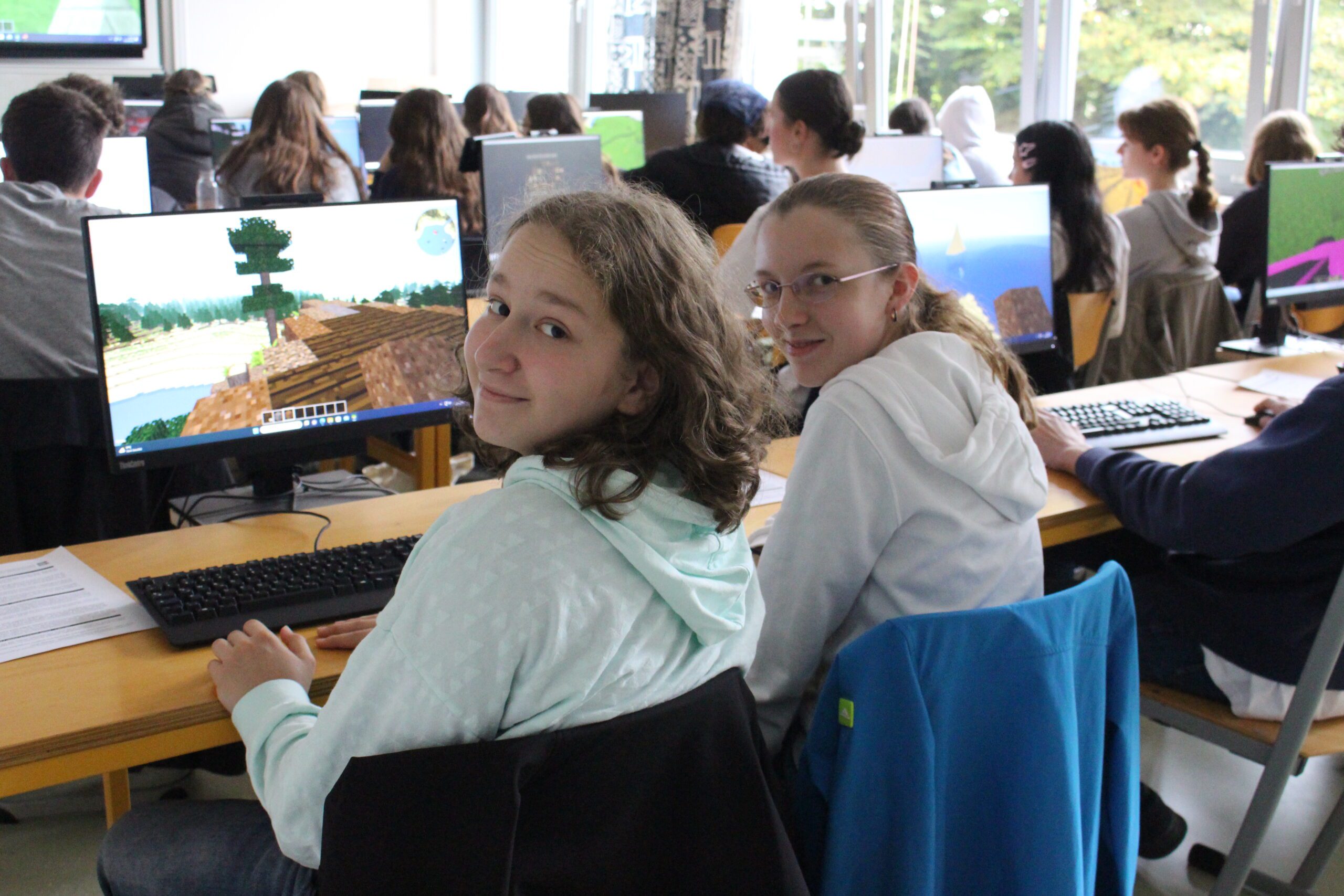 Im Unterricht mal ganz offiziell Minecraft spielen? Dieser Traum vermutlich einiger Schülerinnen und Schüler ist für die Klasse 10c in Erfüllung gegangen. Sie nimmt an dem inklusiven Kurzfilmwettbewerb „überübermorgen“ teil; dazu haben sich die Jugendlichen Geschichten über „übermorgen“ ausgedacht, in denen es beispielsweise darum geht, wie wir die Umwelt vor dem Kollaps retten können und Aliens dabei helfen können. Die Dreharbeiten dazu finden aber nicht in Filmstudios à la Hollywood oder Babelsberg statt, sondern digital. In der Computerspielwelt bauen die Schülerinnen und Schüler Kulissen und schlüpfen vor der virtuellen Kamera in ihre Rollen. Szene für Szene wird am Bildschirm aufgenommen und auch die Postproduktion fehlt hier nicht. Dabei erfolgt der Schnitt des Materials und bei Bedarf werden Szenen mit Musik unterlegt, nachsynchronisiert und Vor- und Abspann eingefügt.