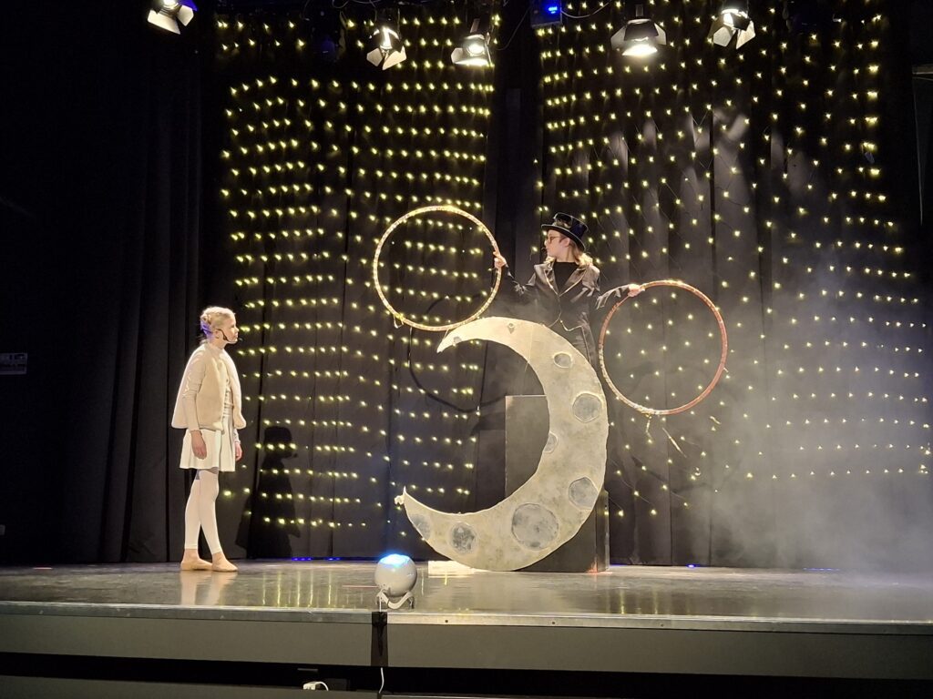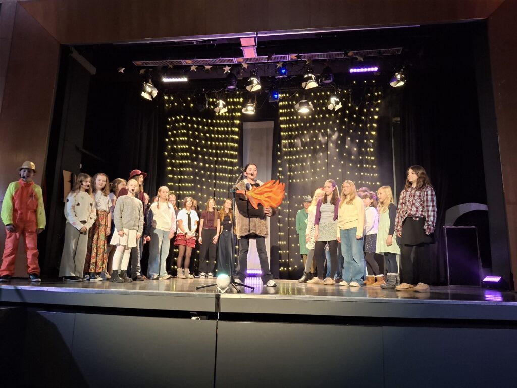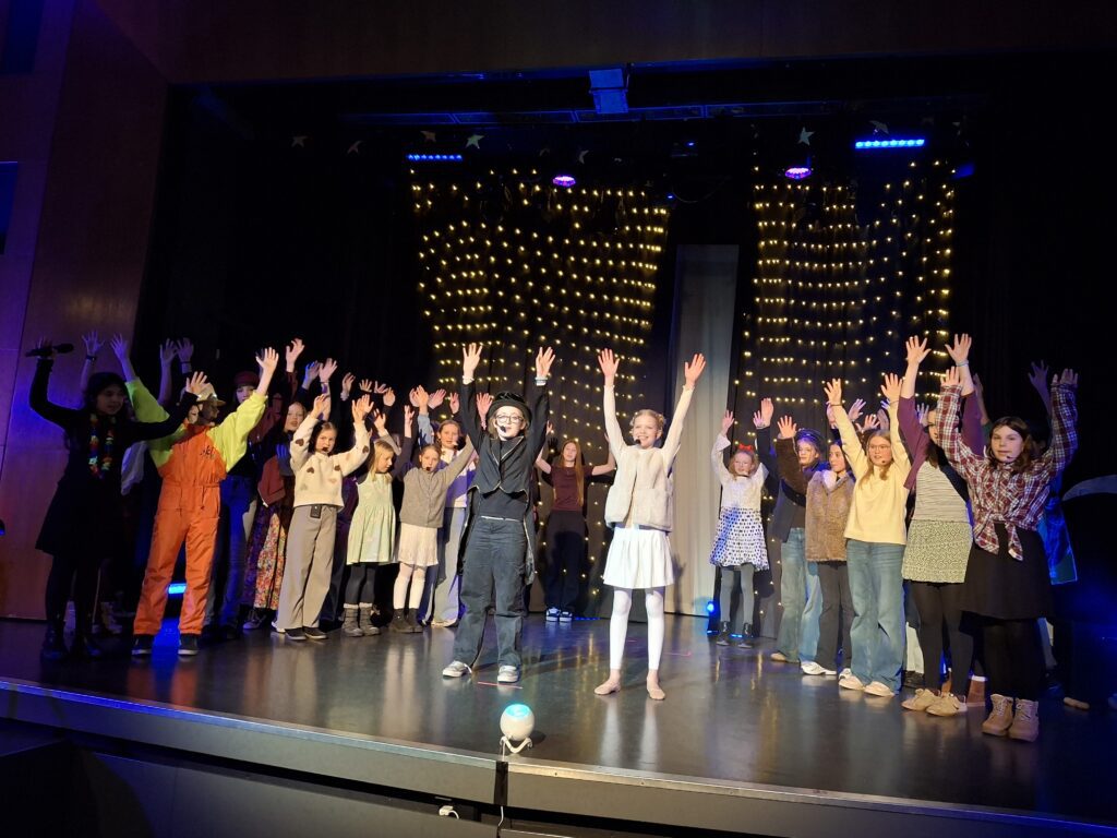 Das ist die Handlung von Rolf Zuckowskis Musical „Der kleine Tag“, das heute in der voll besetzten Aula der Cäci Premiere feierte. Fast 500 Schulkinder und ihre Lehrkräfte saßen im Publikum und zollten nach jedem Lied und besonders am Ende tobenden Applaus. Und das mit Recht! Wie bringt man Begeisterung und Berührung passend in Worte, ohne dass sie zu sachlich klingen? Die Zusammenarbeit von Musical-AG (Frau Burchards), Chor und Orchester (Frau Hoppe) und AG Showturnen (Herr Prieb) hat mit der Unterstützung der Veranstaltungstechnik wieder zu einem Ergebnis geführt, das berührt! Die Musik, der Gesang, der Tanz, das Spiel, die Akrobatik, die Lichteffekte – all das ging direkt ins Herz und führte zu 500 verzaubert stillsitzenden (!) Kindern, vor Rührung feuchten Augen (eher bei den Erwachsenen) und dem festen Vorsatz, sich über jeden Tag zu freuen, mag er zunächst auch langweilig und gewöhnlich wirken.