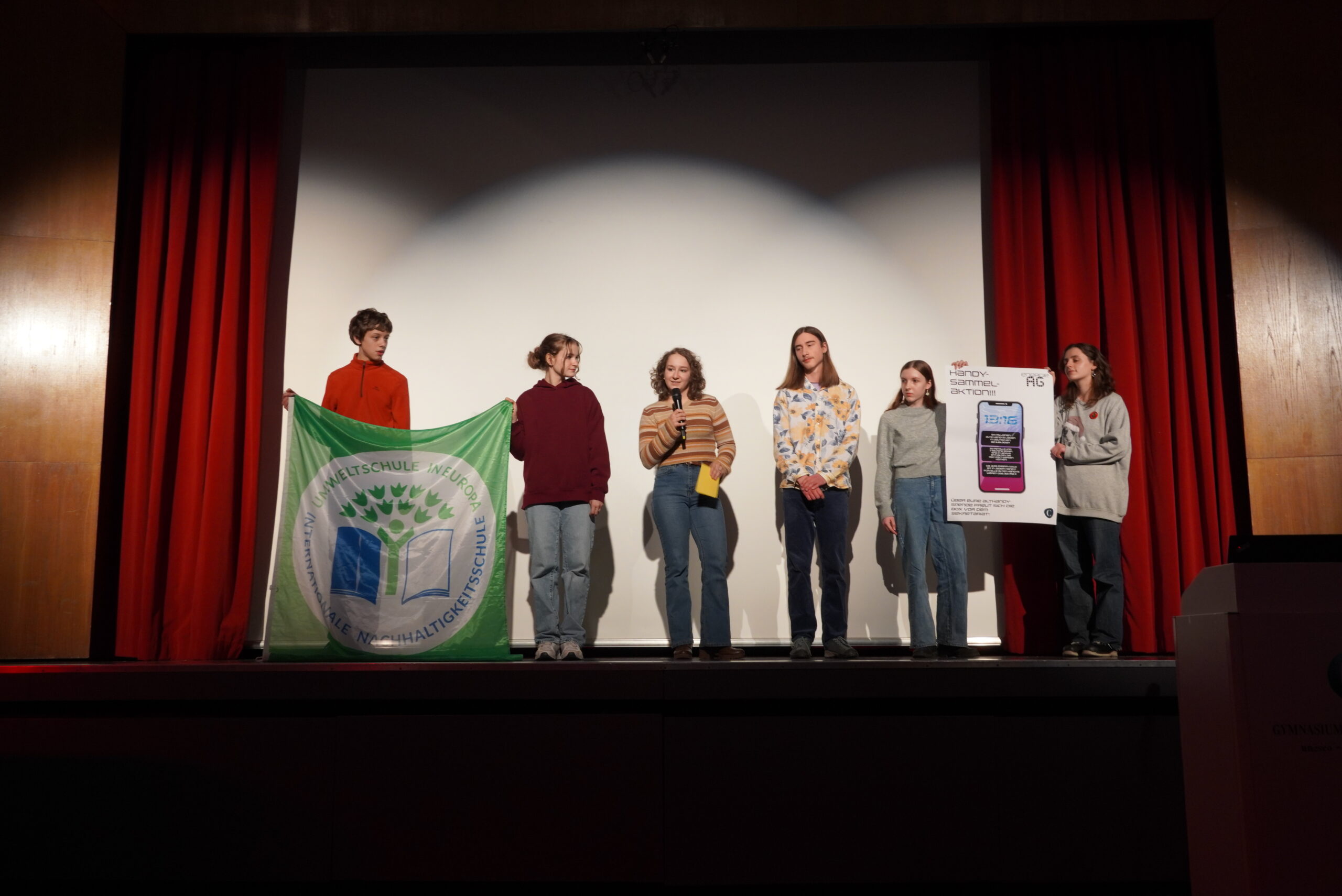 Es wäre also toll, wenn ihr ein nicht mehr gebrauchtes Handy ohne SIM-Karte und mit leerem Akku spenden könntet – und ganz nebenbei: Die Handysammlung ist auch wichtig für unsere neue Bewerbung zur Umweltschule…