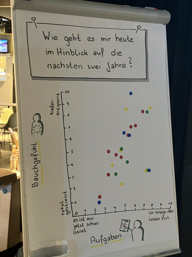 Auch andere Workshops vermittelten Tricks und Techniken, die Stresssyptomen und Leistungsdruck in der Oberstufe vorbeugen sollen: Um achtsame Stressprävention ging es bei Anke Hoffmann, um Selbstmotivation und den Weg nach der Schule bei der Karriereberaterin Dr. Anne Janßen-Richter und körperlich erfahrbar machte Entspannung auch die Kollegin und ehemalige Leistungssportlerin Dr. Heidi Hartmann. In ihrem Raum setzen sich die Schülerinnen und Schüler – zumindest in Gedanken – auf eine Schaukel und nutzten dieses Bild für ihre Atemübung.