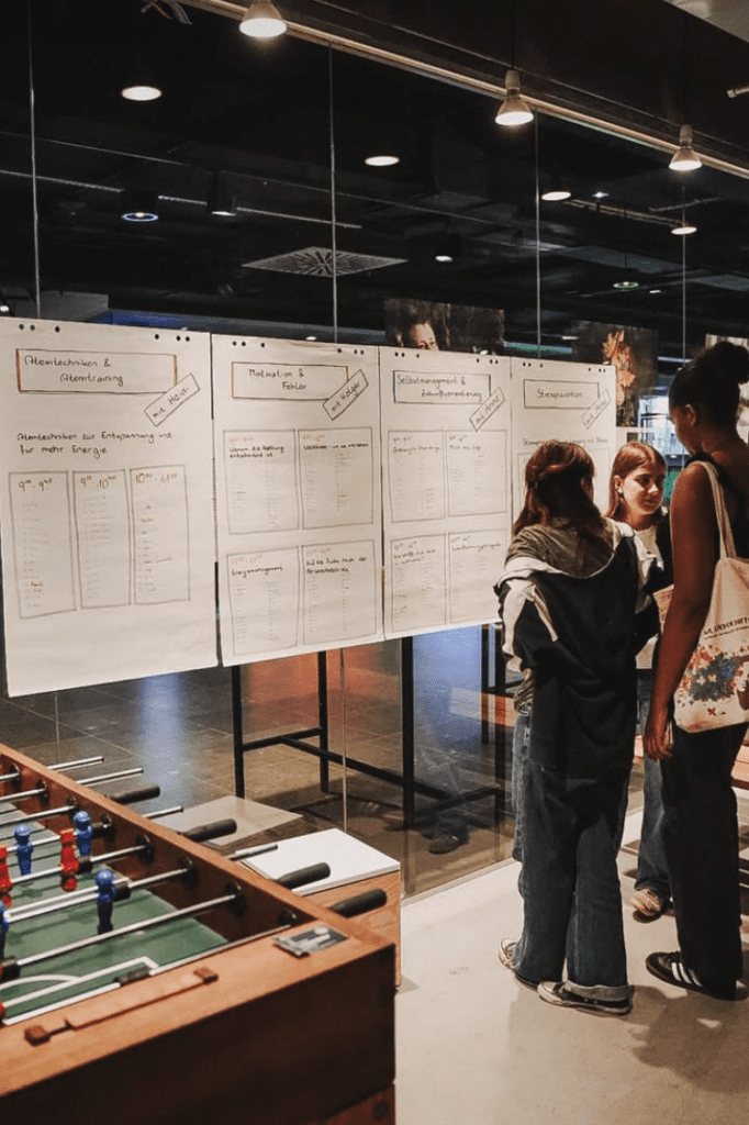 Zwischen platzenden Luftballons, der Schaukelatmung und spontanen Tischkicker-Turnieren lernte der Jahrgang 12 der Cäcilienschule gestern viel zu den Themen Entspannung, Zeitmanagement und Motivation.