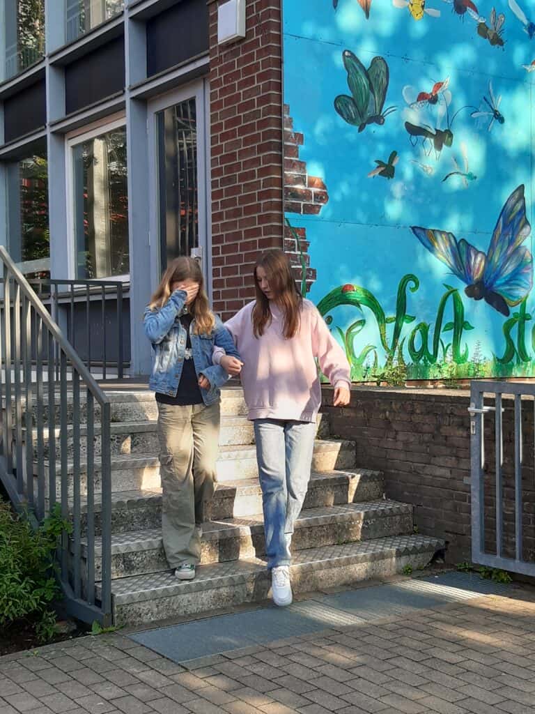 Auch ein blindes Huhn findet einmal ein Korn, blind vor Liebe sein, sich blind vertrauen können, den Wald vor lauter Bäumen nicht mehr sehen… – die Aspekte „Sehen“ oder auch „Blindheit“ spielen nicht nur medizinisch in unserem Alltag eine Rolle, sondern auch im übertragenen Sinne und auf sprachlicher Ebene. Um dem ein wenig nachzuspüren, hat der Religionskurs der Klasse 7c bei Frau Goldbach am Freitag Vertrauensspiele wie die „Blindenführung“ durchgeführt, um im Anschluss die Geschichte von der Heilung des Blinden Bartimäus tiefergehend zu betrachten.