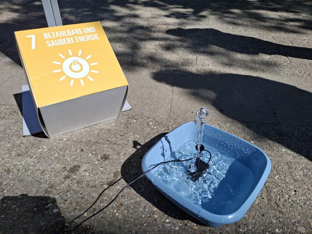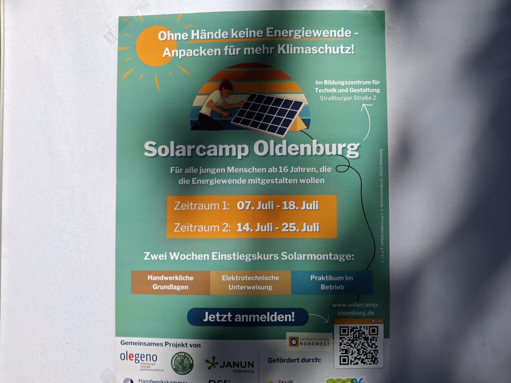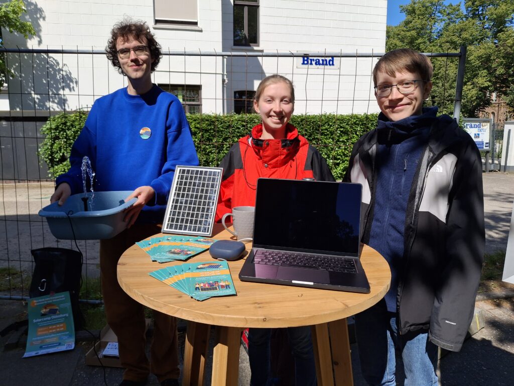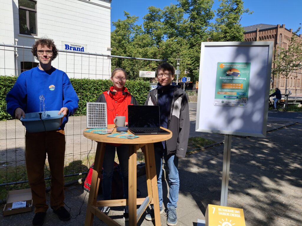In diesem Kontext stand am Freitag auch die Werbung für das Solarcamp Oldenburg, das im Juli 2025 stattfinden wird und sich an junge Menschen ab 16 Jahren richtet und darum vor allem im Pausenbereich der Oberstufe warb. Hier kochten keine Würstchen und brutzelten keine Falafel, dafür plätscherte ein solarbetriebener Springbrunnen erfrischend vor sich hin, was bei dem strahlend blauen Himmel sehr passend war. Weitere Informationen dazu finden sich unter www.solarcamp-oldenburg.de!