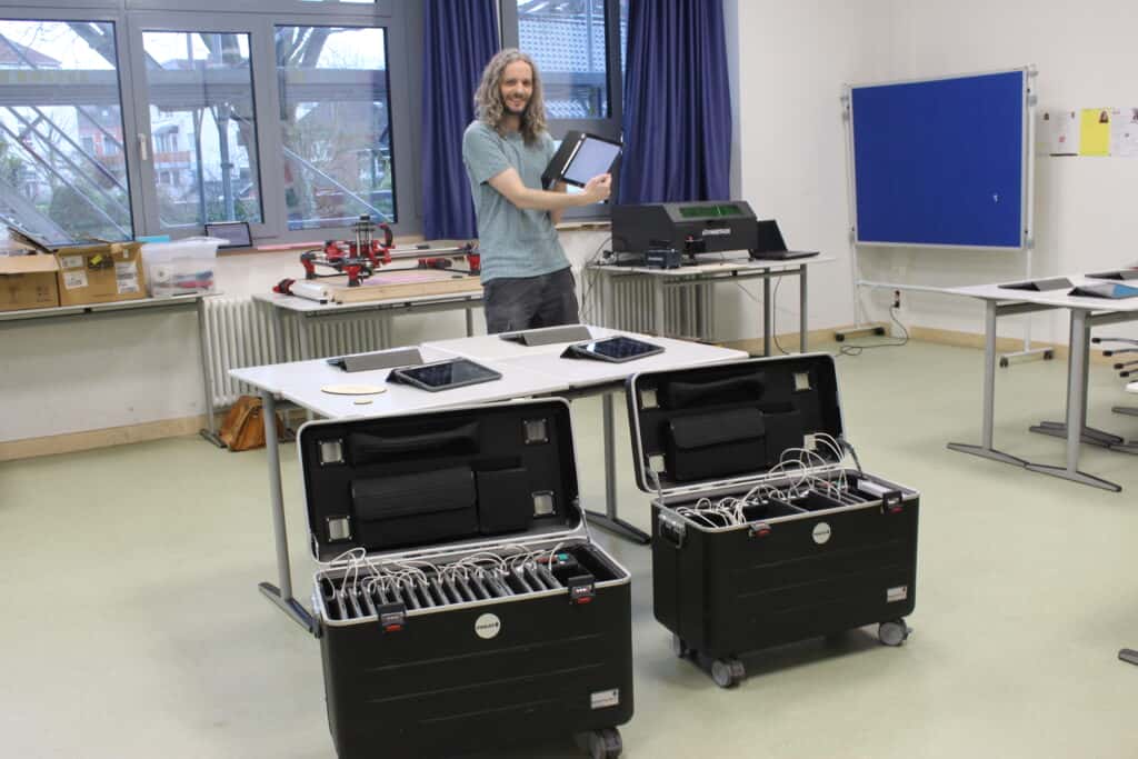 Mit unseren iPads und dem Drucker und Brenngerät kann man faszinierende Dinge anstellen, das finden auch die Lehrkräfte!