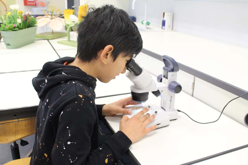 Im Fachraum Biologie gibt es einiges zu entdecken – unter dem Mikroskop oder mit der Vollrauschbrille auf der Nase beispielsweise!