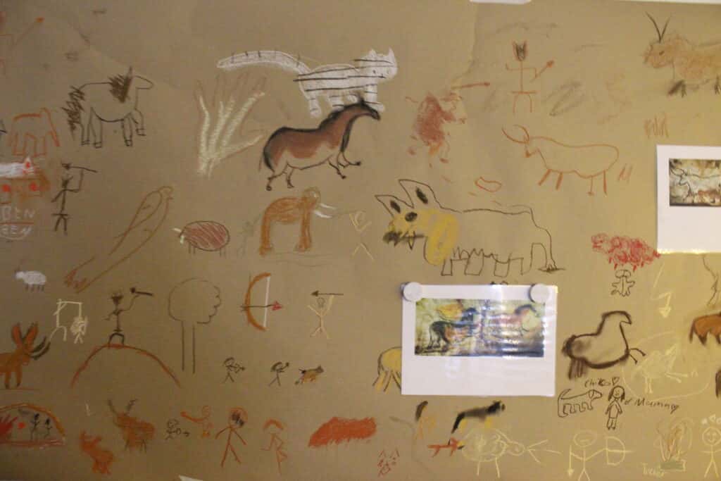 In der „Steinzeithöhle“ durfte man sich an den Wänden verewigen, am Computer im Informatikraum waren die Schülerinnen und Schüler auf digitale Art kreativ.