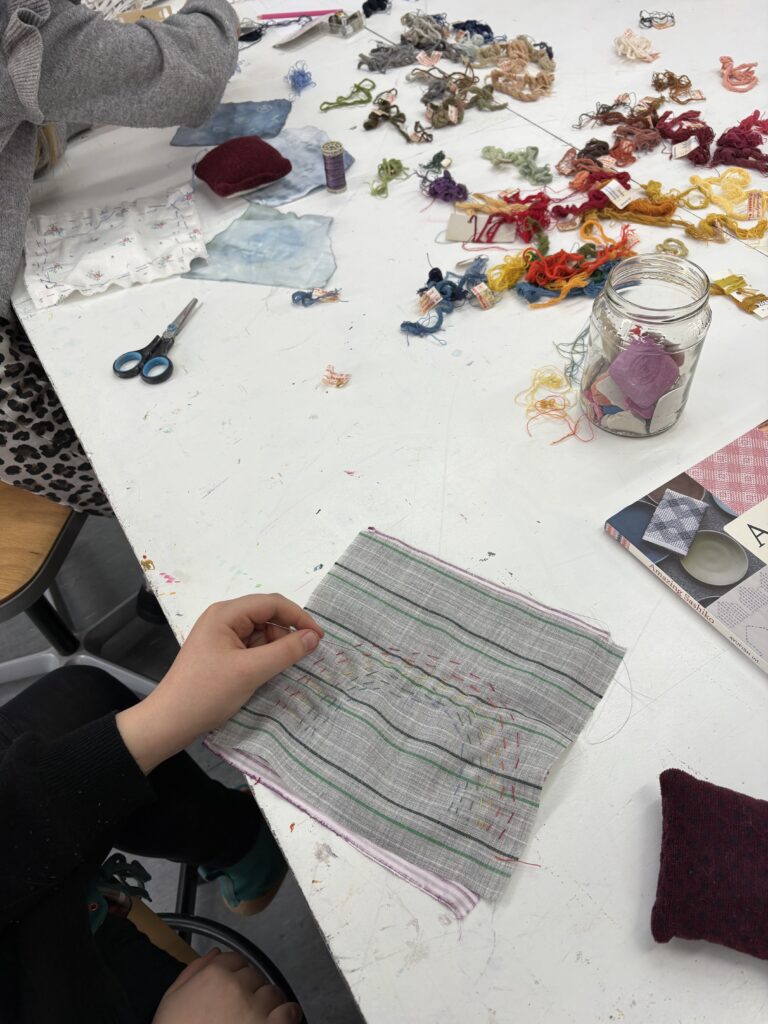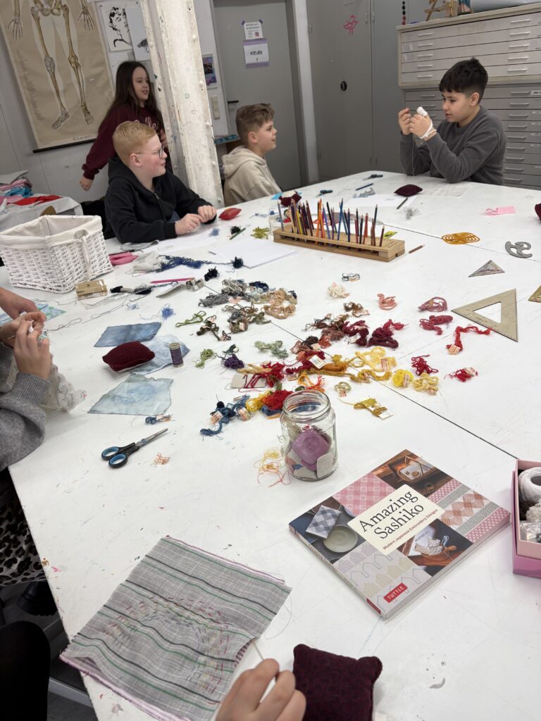 An zwei aufeinander folgenden AG-Terminen haben die Kinder der earth-action!-AG die Kunstschule Klex besucht. Dort haben sie zunächst die Technik der Cyanotypie (Sonnendruck) kennengelernt, die bei Oldenburger Schmuddelwetter besonders herausfordernd war. In der folgenden Woche konnten verschiedene Nähtechniken für das Textilupcycling erprobt werden. Eine schöne Erkenntnis: Durch die Reparatur können kaputte Kleidungsstücke noch schöner werden, als sie vorher waren.