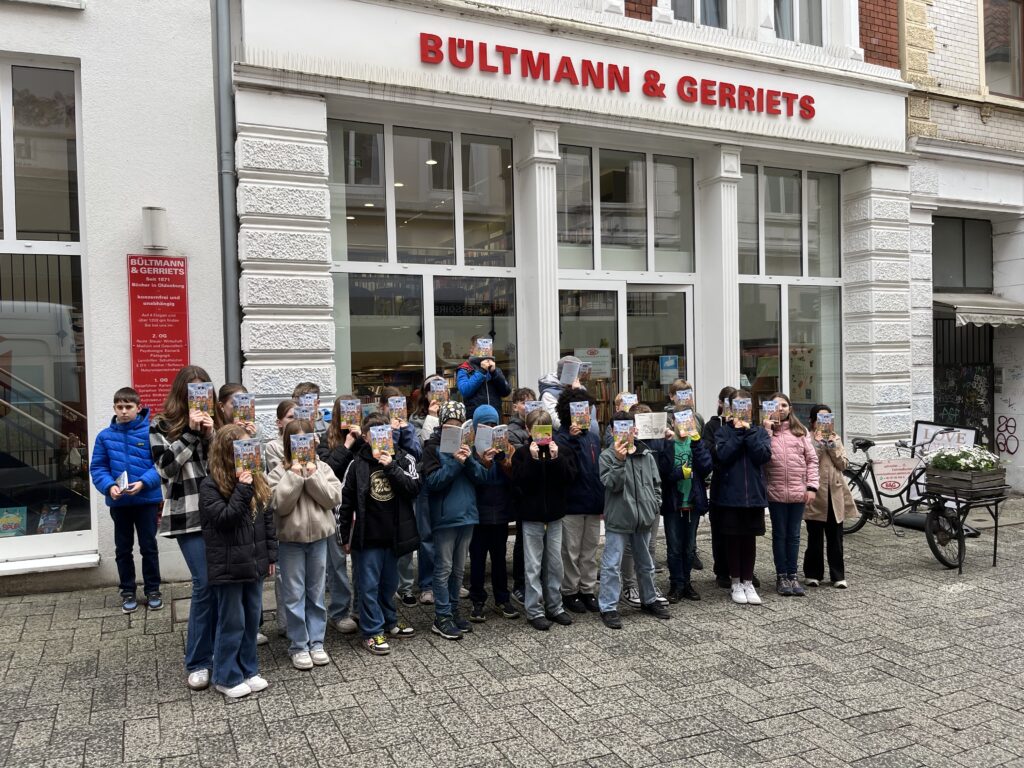 Kaum nach den Ferien zurück in der Schule winkte die Buchhandlung „Bültmann und Gerriets“ mit einem Buchgutschein aus der Reihe „Ich schenke dir eine Geschichte“ anlässlich des „Welttag des Buches“ und die Zeit vor Ort durfte zum individuellen Stöbern genutzt werden.