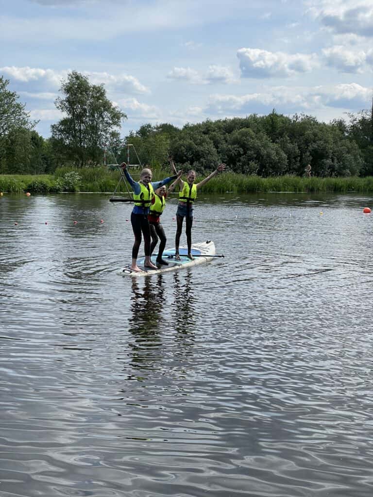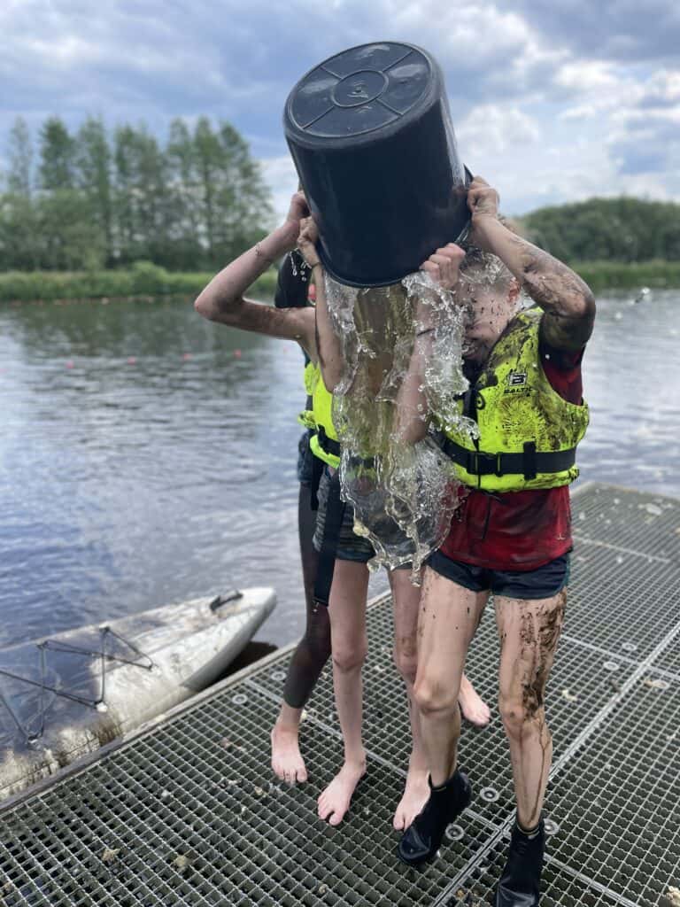 Endlich ist das Wetter wieder so gut, dass das Kentern bei der Wassersport-AG absichtlich passiert. Wenn diese Abkühlung nicht ausreicht, wird gerne auch noch ein voller Wassereimer über dem Kopf ausgeschüttet. So macht Wassersport an der Cäci doch allen Spaß!