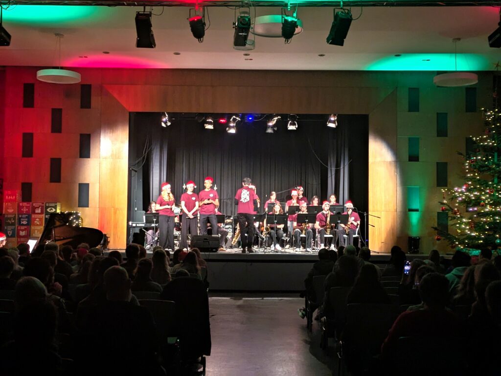 Musik unter dem geschmückten Cäci-Weihnachtsbaum – das gab es vergangenen Mittwoch in der Aula. Mit dabei der kleine Chor, die Percussion-Band, Nufoxas, die L-Band und BigBand! Ein stimmungsvoller Abend mit dem ein oder anderen Weihnachtssong, der auf die verbleibende Adventszeit einstimmte.