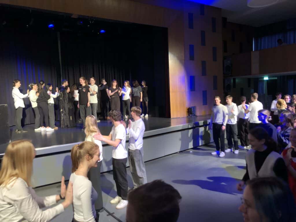 In ganz Niedersachsen finden in den nächsten Wochen neun regionale Schultheatertreffen statt. Den Auftakt für diese Reihe bildete das Treffen an der Cäci am 07.02.2024 in unserer Aula. Ein Beratungsgremium vom Verband für niedersächsisches Schultheater und Darstellendes Spiel bildete die Jury. Gespielt haben neben unseren Oberstufenkursen von Frau Dr. Gralher-Krengel und Frau Burchards zwei Kurse von der Helene-Lange-Schule. Während die HLS mit „Sommernachtstraum“ und „Woyzeck“ ganz klassische Theaterstücke zeigte, waren die Beiträge der Cäci experimentell und selbst entwickelt. Der Kurs aus Jahrgang 13 zeigte „Identität: ein Rollenspiel“ und beleuchtete die vielen Facetten, die die Identität in unserer Gesellschaft prägen. Der Kurs aus Jahrgang 12 zeigte mit „Wovon träumen wir? – Bei Tag und bei Nacht“ eine Collage der Träume und Albträume der Schülerinnen und Schüler. Nun warten wir gespannt darauf, ob wir eine Einladung zum niedersächsischen Schultheater-Treffen im Juni erhalten!