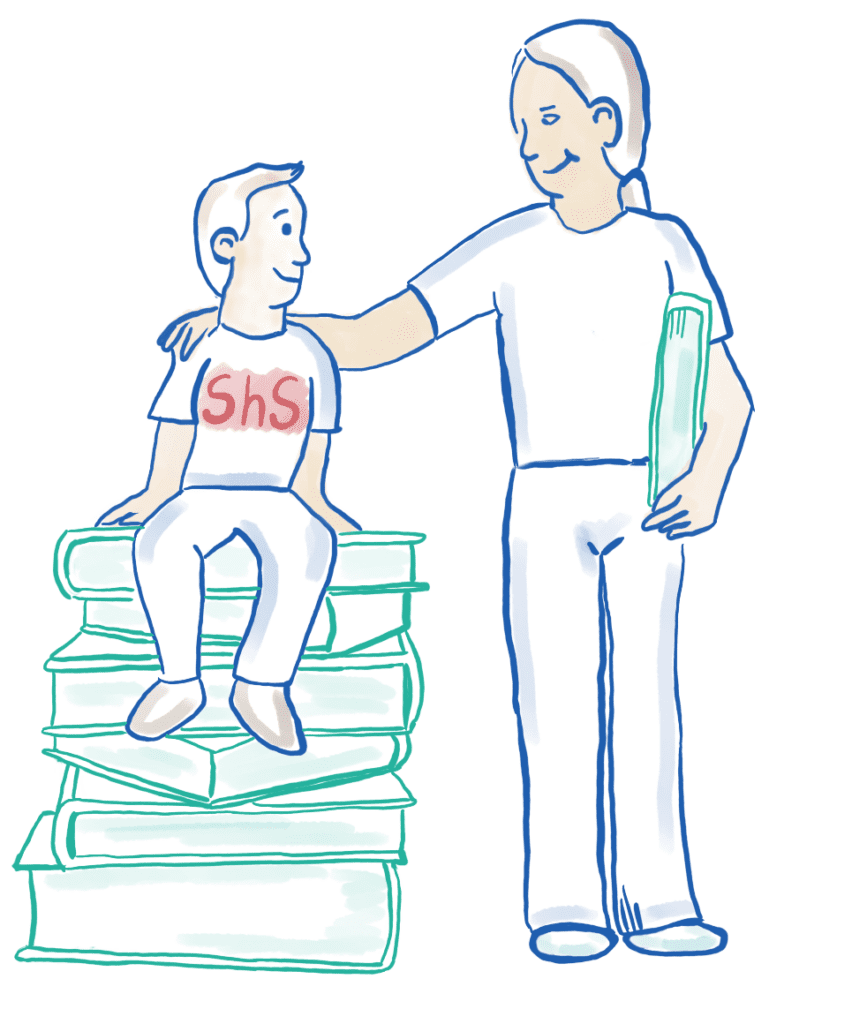 Zudem müssen sich die „Lehrerinnen / Lehrer“ von ihren eigenen Fachlehrkräften bestätigen lassen, dass sie für diese Aufgabe fachlich geeignet sind. Sie sind aufgefordert, sich Informationen zu ihren „Schülerinnen / Schülern“ bei deren jeweiligen Klassen- oder Fachlehrerinnen / -lehrern zu holen, auch stehen im ShS-Team Kolleginnen / Kollegen verschiedener Fächer zur Beratung bereit.