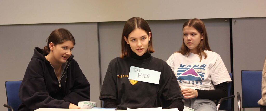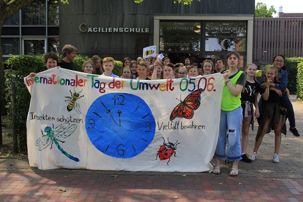 Besuch einer Delegation der Cäci bei unserer Partnerschule in Tambacounda (10/24)Im Rahmen der Lesung „Kein Mensch hat das Recht zu gehorchen“ widmen sich zwei Poetry-Slamer:innen mit tiefgehenden Worten den Themen Menschenrechte, Toleranz und Vielfalt – nicht nur des jüdischen Lebens. (01/25)Im Rahmen unserer Schulpartnerschaft mit dem Lycée Mame Sheikh MBaye hat uns eine Delegation als Tambacounda besucht. (8/24)Grenüberschreitende Literatur im Rahmen des Globale Literaturfestivals an der Cäci. (11/24)Ausstellung „Frieden geht anders – aber wie? (4/24)Eine 11. Klasse hat am Schulwettbewerb zur Entwicklungspolitik „Globaler Kurswechsel – sei du selbst die Veränderung“ teilgenommen und tolle Wettbewerbsbeiträge eingereicht. (6/24)Im Rahmen der Earth-Action-Aktivitäten haben wir gemeinsame mit dem RUZ an Moorschutz- und pflegeprojekten teilgenommen (2/24)Gemeinsamer Chorauftritt mit dem Bulembu-Chor aus Eswatini und dem Chor der Cäcilienschule. (5/24)Regelmäßig finden vor Weihnachten Upcyling-Workshops von Großen für Kleine statt.Teilnahme von Schüler:innen am Planspiel „Plenergy“, welches sich um das Thema Klimaschutz und Energiewende dreht.Im Schuljahr 22/23 bereicherte das „kulturweit-Tandem“ Michele und Daniel unser Schulleben und weitete den Blick für postkoloniale Strukturen und Rassismus (02/23)Beiden Projekttagen zum Thema „Oldenburg – (m)eine Stadt entdecken und nachhaltig gestalten“ gab es tolle Projekte und sehr viele engagierte kleine und große Menschen (6/23)Beim Sportfest rannten viele Kinder soviele Kilometer dass eine fünfstellige Summe an Sponsorengeldern für Klimaprojekte zusammen kamen.Als eine der ersten Schulen in Niedersachsen wurde die Cäci 2022 nach einigen Energieeinsparmaßnahmen und erheblichen Kompensationsleistungen als klimaneutrale Schule ausgezeichnet.ERASMUS-Projekt: Unter dem Motto „Create the Future of your Community“ nahmen sechs Vertreter*innen der Cäci an einem Erasmus-Projekt in Portugal in der Nähe von Lissabon teil. (11/22)Waren wir das? Ja! Die earth action!-AG hat sich im Rahmen der Beschäftigung mit unserem Konsumverhalten durch die gelben Säcke der Cäcilienschule gewühlt und eine Auswahl vermeidbaren Mülls zutage gefördert. (6/22)Klimamobilitätstag – Im Rahmen unserer Klimaaktivitäten konnte gezeigt werde, wie sinnvoll man einen Parkplatz nutzen kann, wenn alle auf das Auto verzichten: zum Spielen, Klönen, Sport! (09/22)Zukunftsvisionen einer klimaneutralen Cäci: Mit dem Zukunftsmodell der Cäci hat sich die earth-action-AG am Wettbewerb „klimaneutrale Stadt im Schuhkarton“ beteiligt. (02/22)Gemeinsam mit anderen Climate Action Project Schulen hat die Cäci im September einen Stratosphärenballon gestartet,der Wetterdaten aus bis zu 15.000m Höhe aufgezeichnet hat. (9/21)Vielfalt statt Einfalt! Im Rahmen unserer Umweltaktivitäten hat der Kunst-Profil-Kurs (Jg. 9) ein riesiges Wandgemälde gestaltet, das hoffentlich viele Insekten einladen wird, sich im darunter liegenden Beet oder dem „Hotel“ niederzulassen. (6/21)Müll im Meer – Der runde Tisch „Meeresmüll“ als Planspiel für Schülerinnen und Schüler: Im Rahmen des Spiels Müll im Meer – Der Runde Tisch Meeresmüll als Planspiel für Schülerinnen und Schüler vertreten die Spielerinnen und Spieler verschiedene gesellschaftliche Gruppen anhand einzelner Rollen. Cäci-Schülerinnen und -Schüler waren dabei! (1/21)Think global – act local! Mit Muskelkraft, Säge, Akkuschrauber und Pinsel hat die earth action!-AG dem Bauzaun auf dem Weg zum Dobbenhof zu mehr Farbe und Aussagekraft verholfen. Auf ihrem Weg in den Unterricht werden die Fünft- und Sechstklässlerinnen und -klässler nun von einem fröhlichen Demonstrationszug mit motivierenden Spruchbändern begleitet: Man ist nie zu klein, um einen Unterschied zu machen! (11/20)Dialog-Treffen mit dem Gymnasium Bad Zwischenahn – Edewecht: Im Rahmen der Qualitätsentwicklung der UNESCO-Projektschulen haben Mitglieder unserer earth action!-AG am 27.01.2020 die UNESCO-Gruppe des Gymnasiums in Bad Zwischenahn für ein Dialogtreffen besucht. (01/20)Pünktlich zum Beginn der Klimakonferenz (COP25) in Madrid hat die Cäcilienschule entschieden, bei der Planung von Klassenfahrten nach Möglichkeit das ökologischste Verkehrsmittel gewählt und auf Flugreisen vollständig verzichtet wird. (12/19)Upcycling-Workshop „Weihnachten“: Ohne Extra-Ressoucenverbrauch haben Schülerinnen und Schüler der 5. und 6. Klassen Weihnachtsgeschenke in einem nachmittäglichen Workshop gebastelt. (12/19)Prima Klima: Unter dem Motto „Prima Klima in der Schulmensa“ wurde vom 11. bis 15.11.19 der Zusammenhang unserer Ernährung mit dem Klima ins Bewusstsein gerückt. (11/19)Tag der Umwelt: Die earth-action-AG und etwa 200 Schülerinnen und Schüler der Jahrgänge 5 und 6 waren für den Umweltschutz mit Schwerpunkt auf dem Insektenschutz aktiv! In der Innenstadt wurden Passanten über den Tag der Umwelt und das Insektensterben informiert und selbst gerollte Saatkugeln zu verschenkt. (06/19)Blumenwiese für Insekten: Die earth-action! AG hat die aktuellen Studien zum dramatischen Rückgang der Artenvielfalt bei Insekten zum Anlass genommen, zwei kleine Flächen im Innenhof vor der Cäciteria in insektenfreundliche Blumenwiesen zu verwandeln. (06/19)earth-action!-AG im Wattenmeer-Haus: Wie viele Jahre dauert es, bis eine Plastikflasche zerfallen ist? Wie viele Teilchen Mikroplastik stecken in einem Teelöffel Strandsand? Welche Kunststoffe schwimmen, welche sinken ab? Diesen und weiteren Fragen ging die earth-action!-AG (UNESCO) mit Frau Tellechea und Frau Dr. Gralher-Krengel in kleinen Experimenten in einem Workshop des Wattenmeer-Besucherzentrums Wilhelmshaven nach. (01/19)earth-action!-AG zu Besuch beim AWB: Jedes Jahr produziert ein Bürger in Deutschland laut Umweltbundesamt durchschnittlich 565 Kilogramm an Haushaltsabfällen. Was passiert eigentlich mit dem ganzen Müll? Mit d