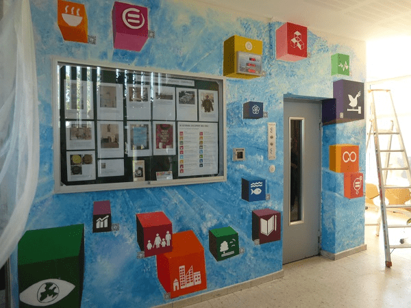 Am 25. September 2015 wurde auf dem Gipfel der Vereinten Nationen in New York die „Agenda 2030 für nachhaltige Entwicklung“ verabschiedet. Die 17 Entwicklungsziele der Agenda erinnern uns an die Notwendigkeit im Sinne von nachhaltiger Entwicklung unser Handeln zu überdenken und zu verändern. Für alle sichtbar stehen die Würfel mit diesen Zielen in unserer Aula.